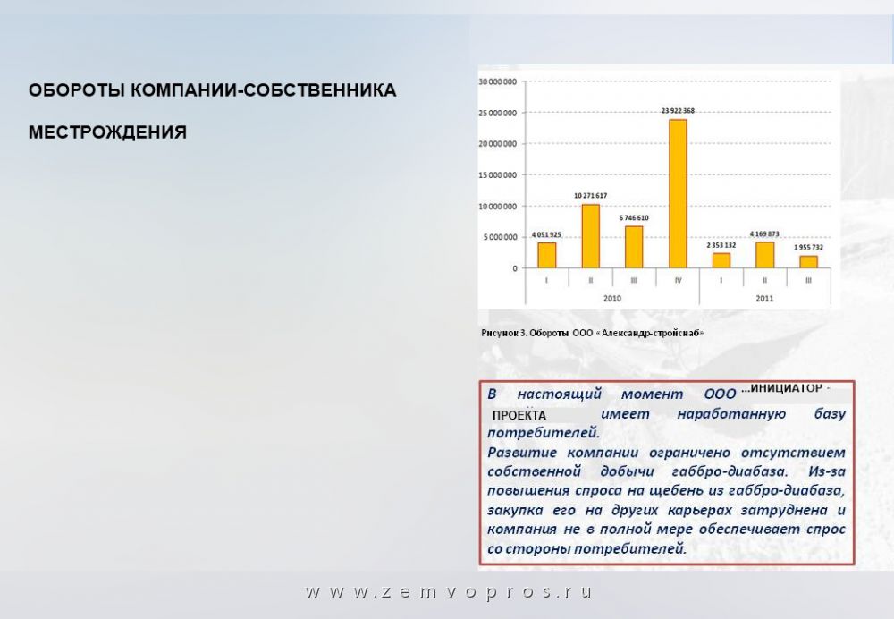 4. Опыт работы компании-инициатора проекта на рассматриваемом рынке (строительство и эксплуатация карьеров по добыче нерудных полезных ископаемых). Наличие наработанной клиентской базы.
