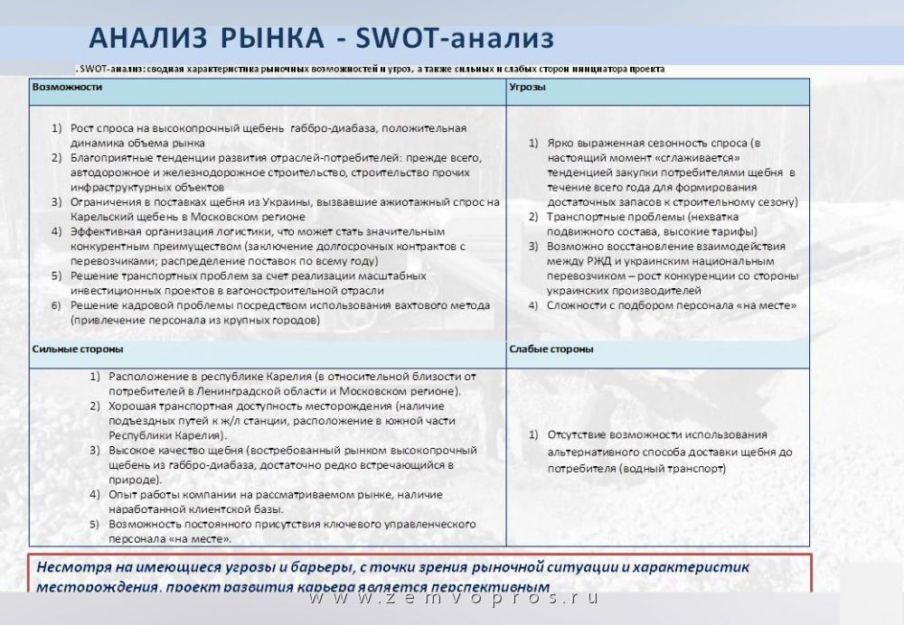 1. Расположение месторождения-карьера в Республике Карелия - в относительной близости от потребителей Ленинградской области и Московского региона.
