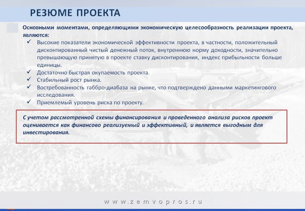 1. Цель проекта- строительство и эксплуатация собственного карьера по добыче щебня.