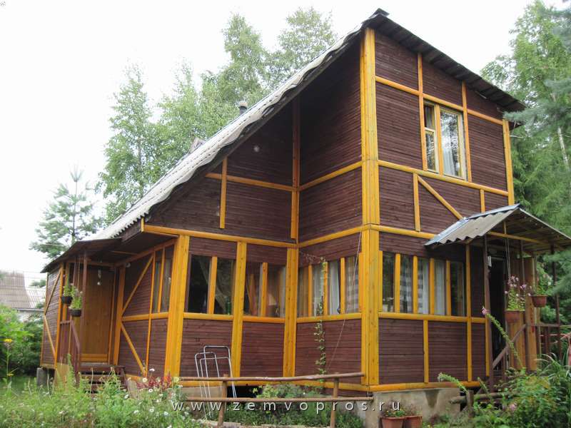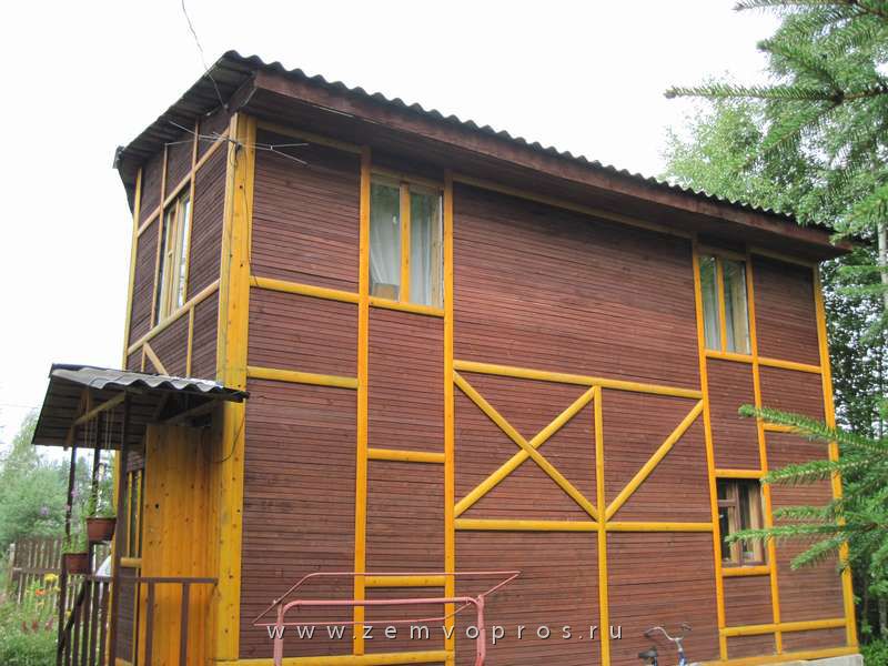 1. Двухэтажный деревянный дом. Общая площадь - 85 м2 . Обшит вагонкой: