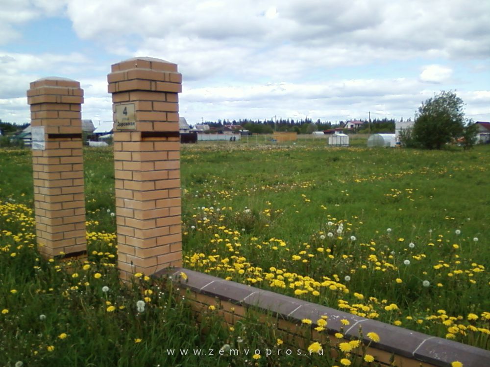 - Участок огорожен. Кирпичный забор - по фасадной части участка. По периметру - фундамент под забор ( 90 см) с кирпичной кладкой и вкопанные трубы.
