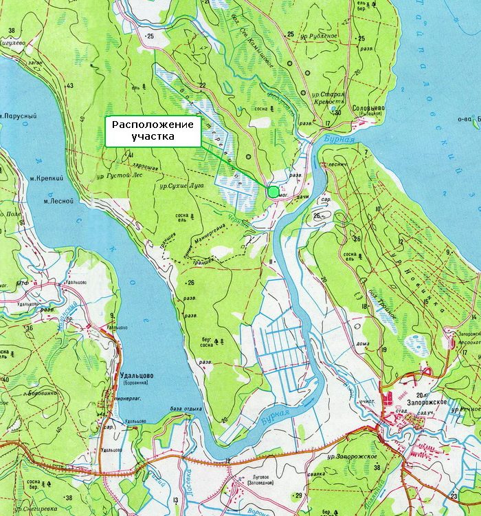 - Вода рядом (примерно в 1 км от озера Суходольское, в 100 метрах от ручья).