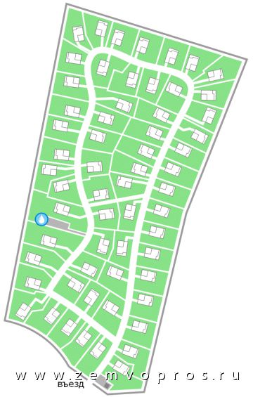 Собственная насосная станция. Мощность водоснабжения - 720 м3 /сут. на весь поселок.