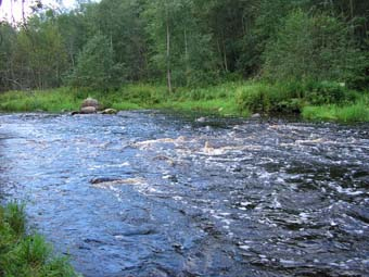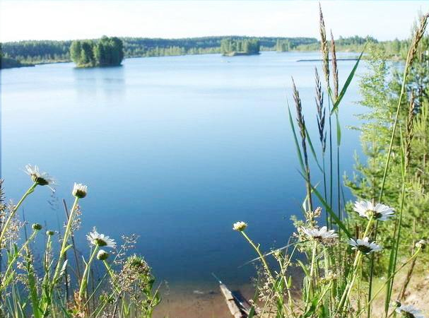 а) "Середина" длинной стороны (вдоль дороги) садоводства : через дорогу на первой береговой линии реки Мга расположен небольшой коттедж -"теремок"(похож на маленькую церквушку).