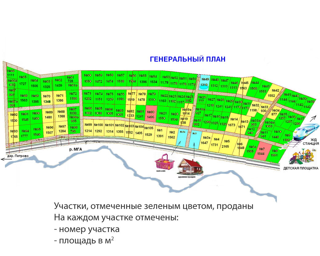 1. На генплане ДНП зелёным цветом выделены уже проданные участки.