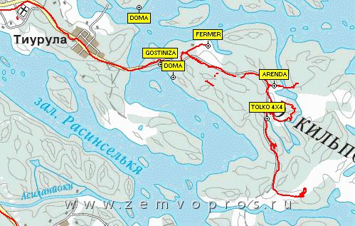 по Приозерскому шоссе до Приозерска, далее продолжаете движение по главной дороге в сторону посёлка Бригадное, далее везде по главной дороге - проезжаете Бурнево, слева останется поворот на Кузнечное, далее Берёзово (справа от шоссе), далее - въезд в Республику Карелия : посёлок Асилан (справа от шоссе), Куркиёки, Куликово , посёлок Хийтола. Далее главная дорога поворачивает направо на Сортавала, после Хийтола через 500м будет мост через маленькую речку и через 3 км поворот от главной дороги в сторону деревни Тиурула (есть указатель). Далее везде по главной дороге через посёлок Тиурула (около 9 км) до моста на остров Кильпола.
