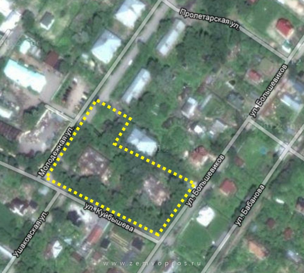 Объединены вместе три участка: ул. Куйбышева, 14, ул. Куйбышева, 16А, ул. Молодёжная, 12А.