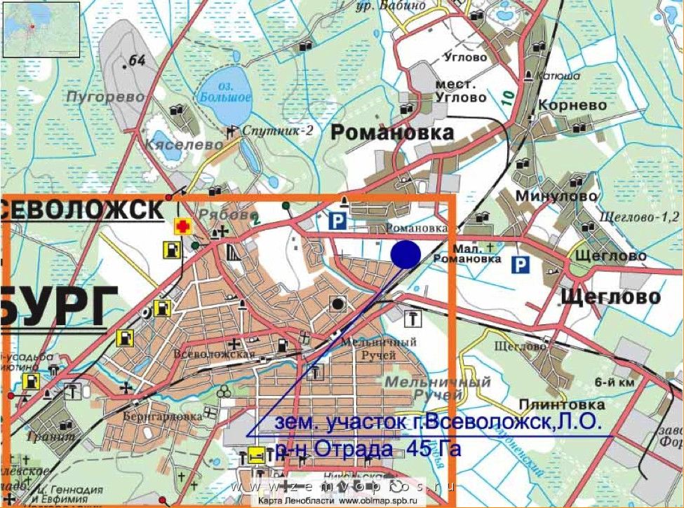 Земельный массив площадью 45 га в функциональной зоне жилищной застройки во Всеволожске.