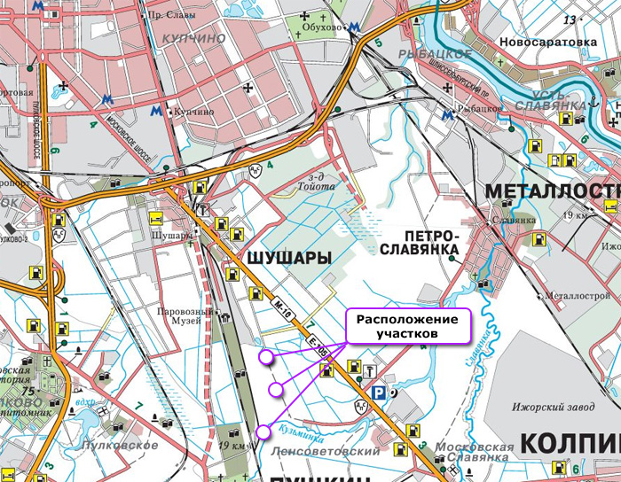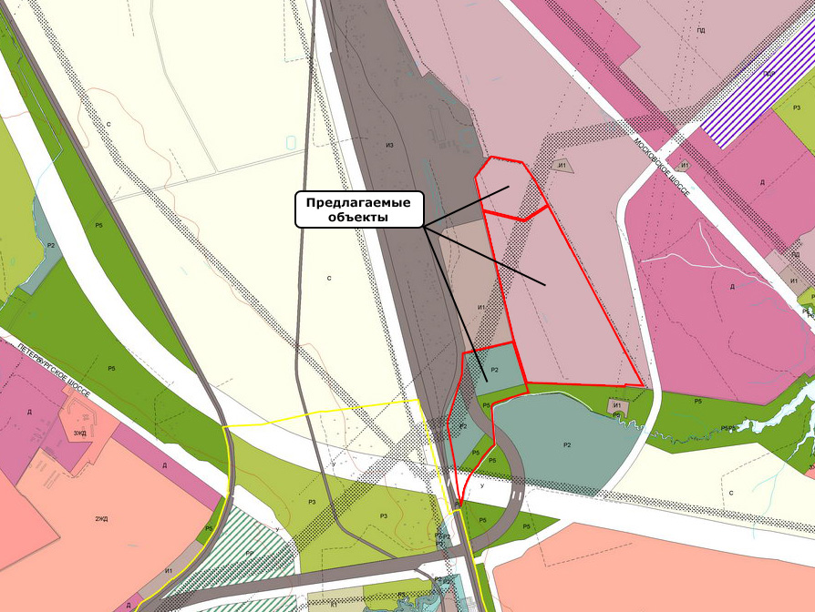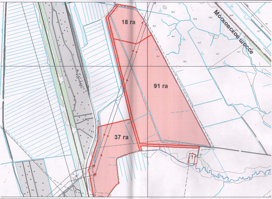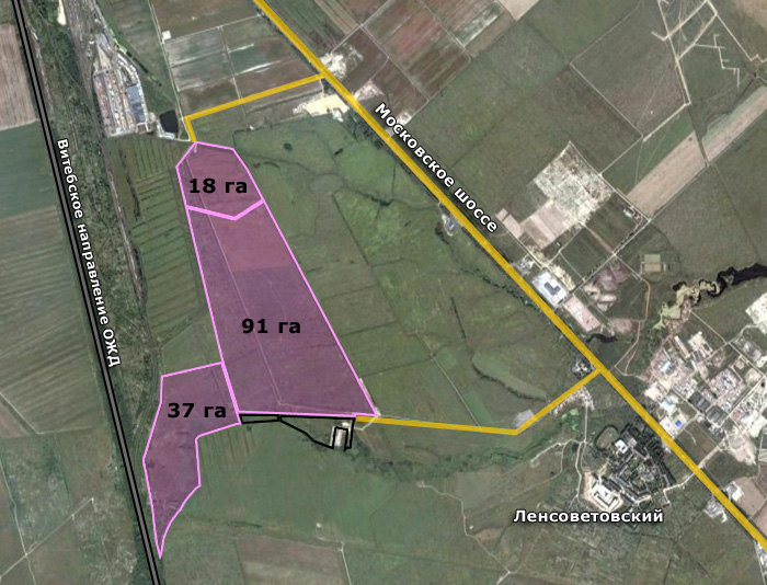 Земельные участки промышленного назначения площадью 18 га, 91 га и37 га в промзоне Шушары Санкт-Петербурга.