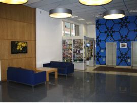 Первый этаж занимают кафе, пост охраны, зона отдыха.
