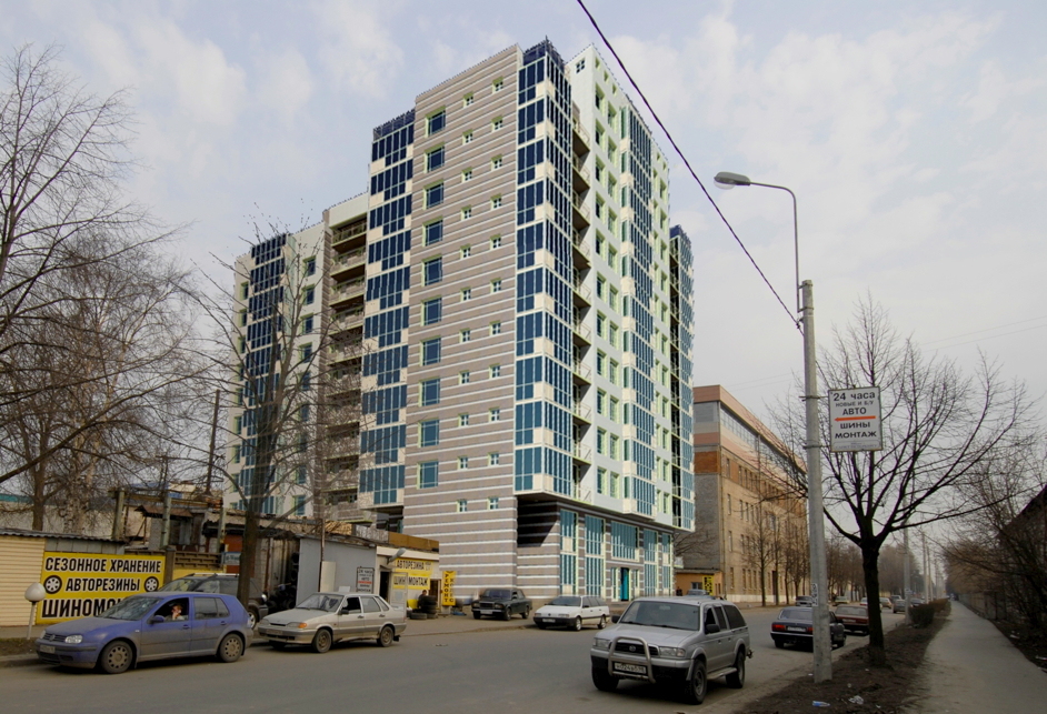 Конструктивная основа здания - монолитные железобетонные стены с навесными стеновыми конструкциями из кирпича с вентилируемой фасадной системой.