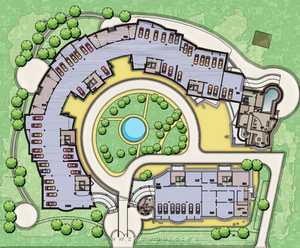 Проект реконструкции подразумевает строительство гостиничного комплекса с благоустроенной парковой зоной: