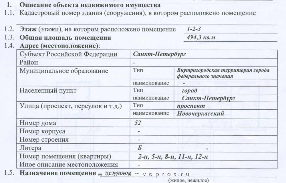 Помещения в нежилом здании в Красногвардейском районе Санкт-Петербурга на Новочеркасском проспекте
