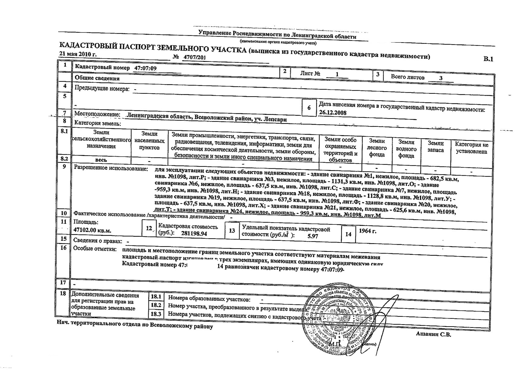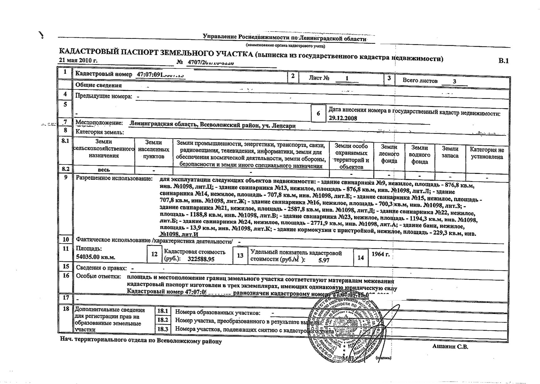 - стоимость участка площадью 4.7 га - 15 млн. руб.
