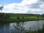 В 150 км от Санкт-Петербурга (120 км по Мурманскому шоссе, до поворота за постом ГАИ , далее примерно 30 км по повороту налево за Новой Ладогой).