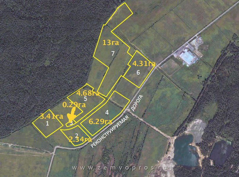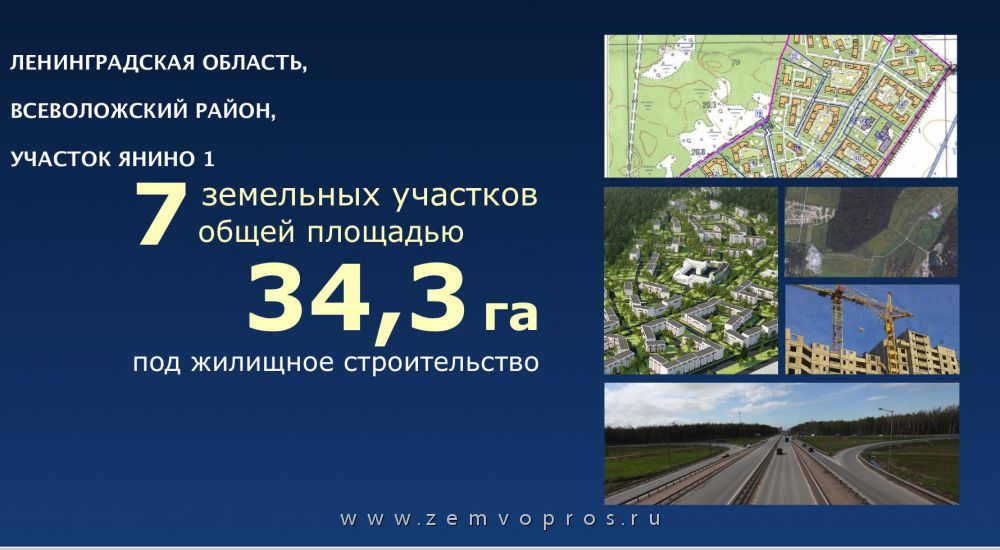 Земельные участки под среднеэтажное жилое строительство общей площадью 34.3 га ( 3.41 га, 2.34 га, 0.29 га, 6.29 га, 4.68 га, 4.31 га, 13 га) в составе квартала под комплексное освоение территории в посёлке Янино-1.