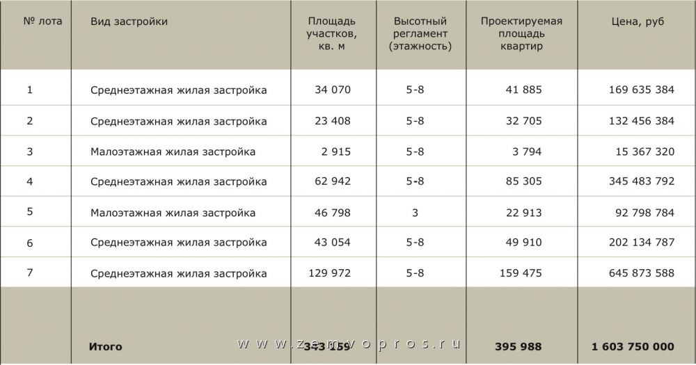 Стоимость участка общей площадью 34.3 га - 1.6 млрд.руб.