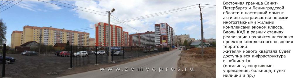 Восточная граница Санкт-Петербурга и Ленинградской области в настоящий момент активно застраивается новыми многоэтажными жилыми комплексами эконом класса.