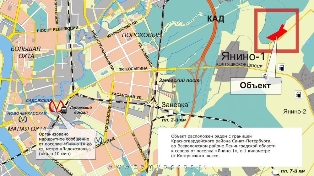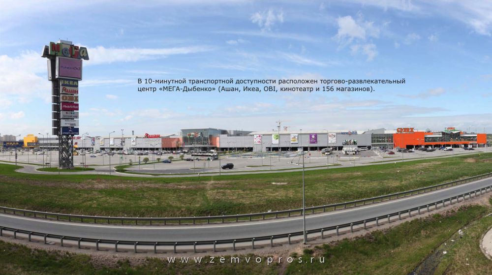 Развитая инфраструктура в окружении участков: посёлок Янино 1 и ТРК «МЕГА-Дыбенко».