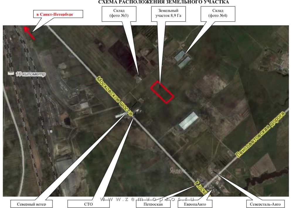 подъезд осуществляется со стороны Московского шоссе по асфальтированной дороге – 400 м,