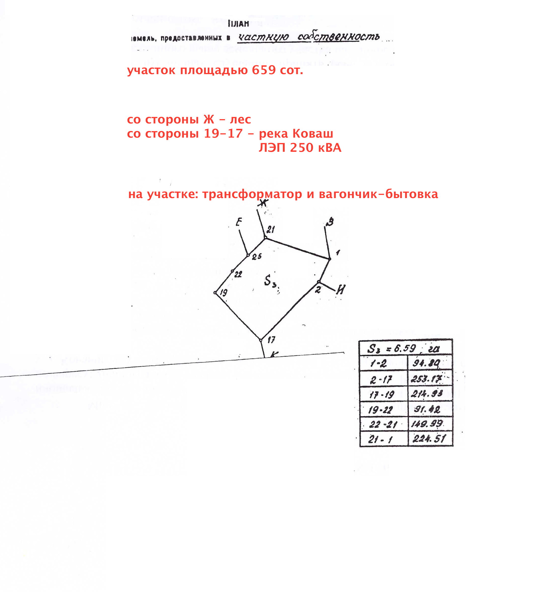 Сторона 19-17- река Коваш. От берега 10-20 м. Эта зона также была в аренде. Аренду возможно возобновить.)