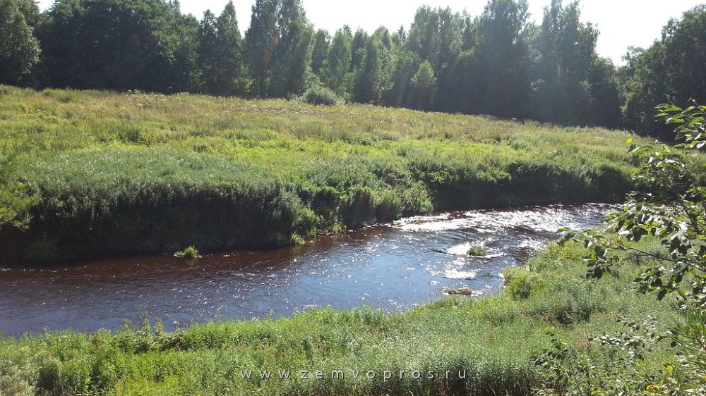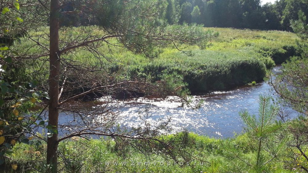 - По границе участка - мелиорационная канава шириной 1.5 - 2 метра. Вода чистая, не заболоченная.
