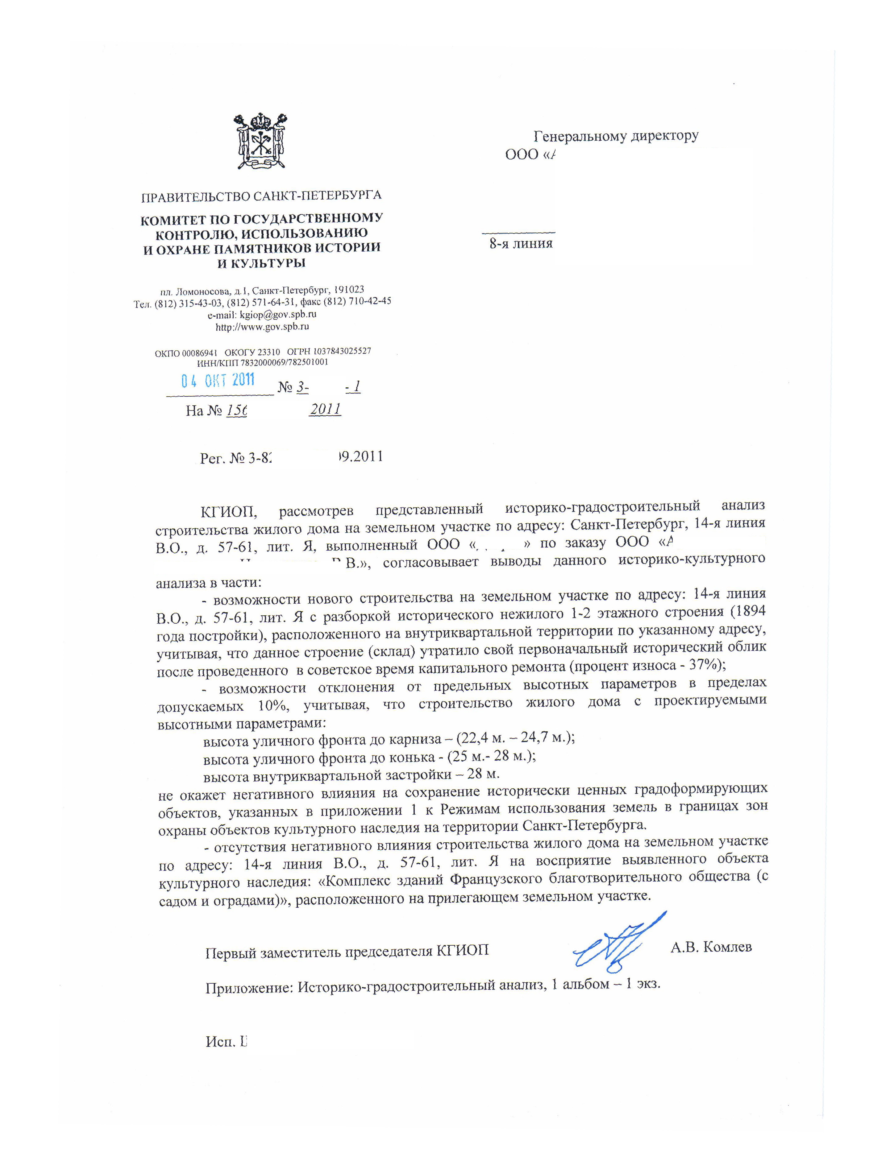 8.Историко-градостроительный анализ строительства, согласованный с КГИОП.