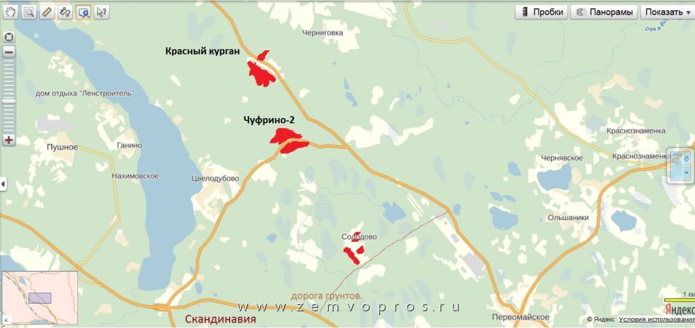 Земельный массив общей площадью 31.2 га для возможного строительства коттеджного посёлка или сельскохозяйственной деятельности на территории «Солодово» между посёлком Первомайское и федеральной трассой «Скандинавия».