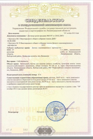 На каждый из участков оформлены кадастровый паспорт и свидетельство на право собственности.