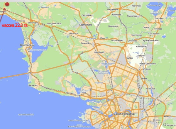 Земельный массив для дачного хозяйства общей площадью 22.8 га на берегу реки Сестра вблизи посёлка Ленинское