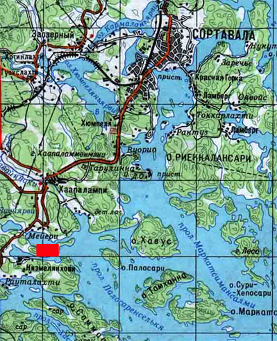 - Участок располагается на длинном полуострове, недалеко от поселка Мейери в Сортавальском районе.